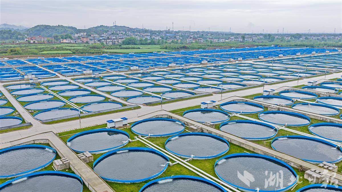 4月7日,宜都清江鲟鱼谷二期项目建成442个圆形鱼池,预计今年5月底前完成2000吨鲟鱼投放,按12%至15%产籽率测算,可产出鱼子酱200至300吨,将推动清江鲟鱼谷鱼子酱产量翻倍。(湖北日报全媒记者 刘曙松 通讯员 黎文来 摄)