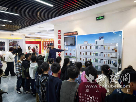 孩子们参观建筑消防联动演示系统。通讯员 供图
