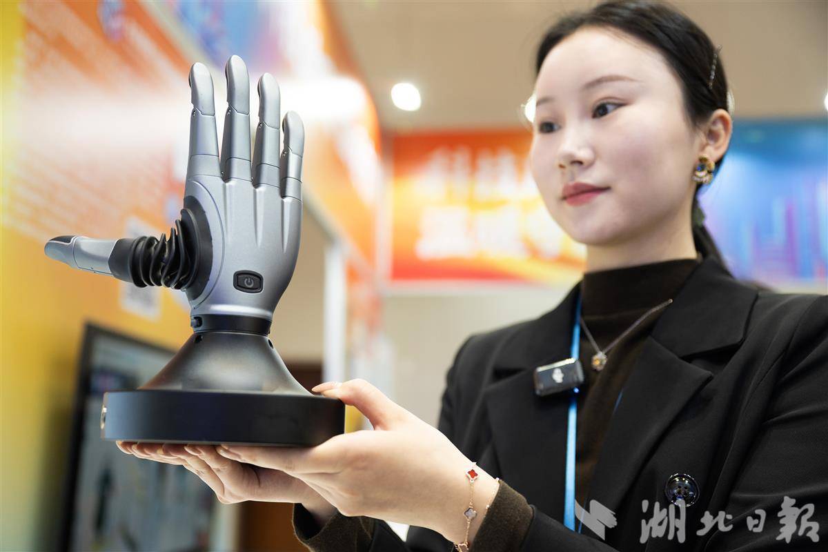 4月8日,在本届健博会首次增设的科技助残展区,衷华脑机首次展示的智能仿生手引人注目。(湖北日报全媒记者 任勇 魏铼 摄)