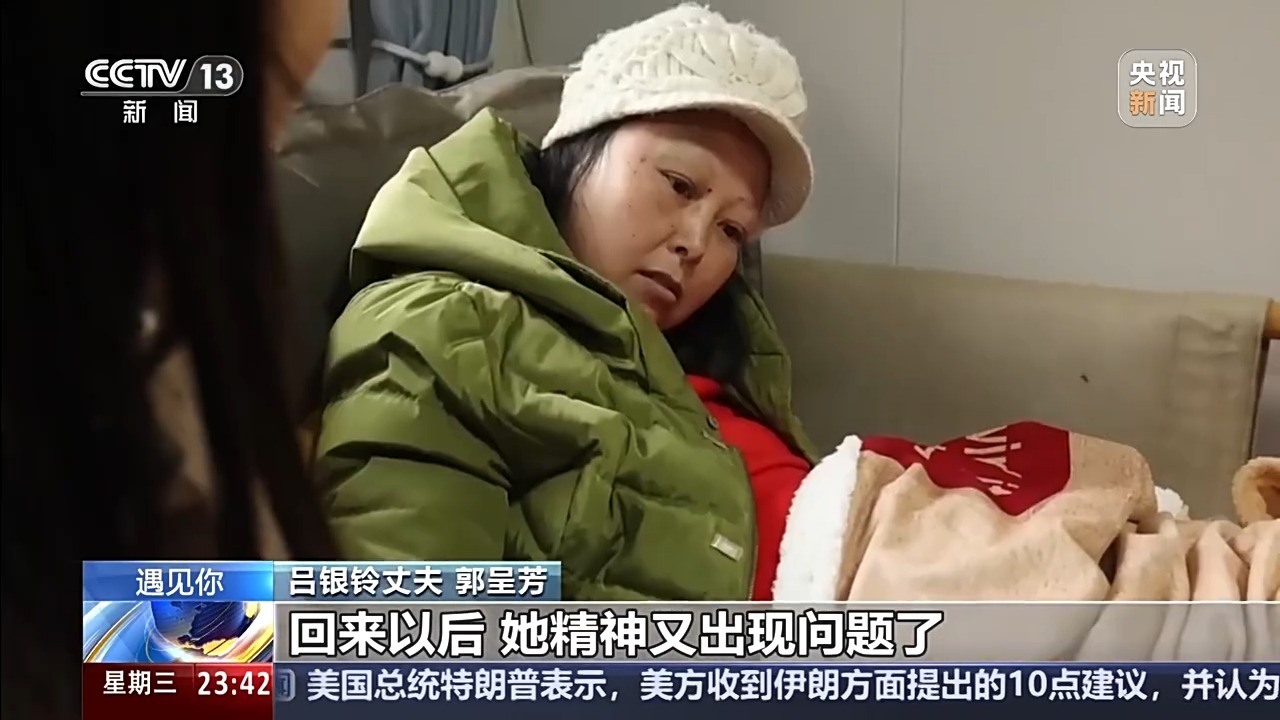 张宝珠儿子、吕银铃丈夫 郭呈芳:回来以后,她精神又出现问题了。她大脑是器质性损伤引起的精神分裂症,没办法又去省精神病院住了两个月。刚生病那时候,家里边彻底都乱了。
