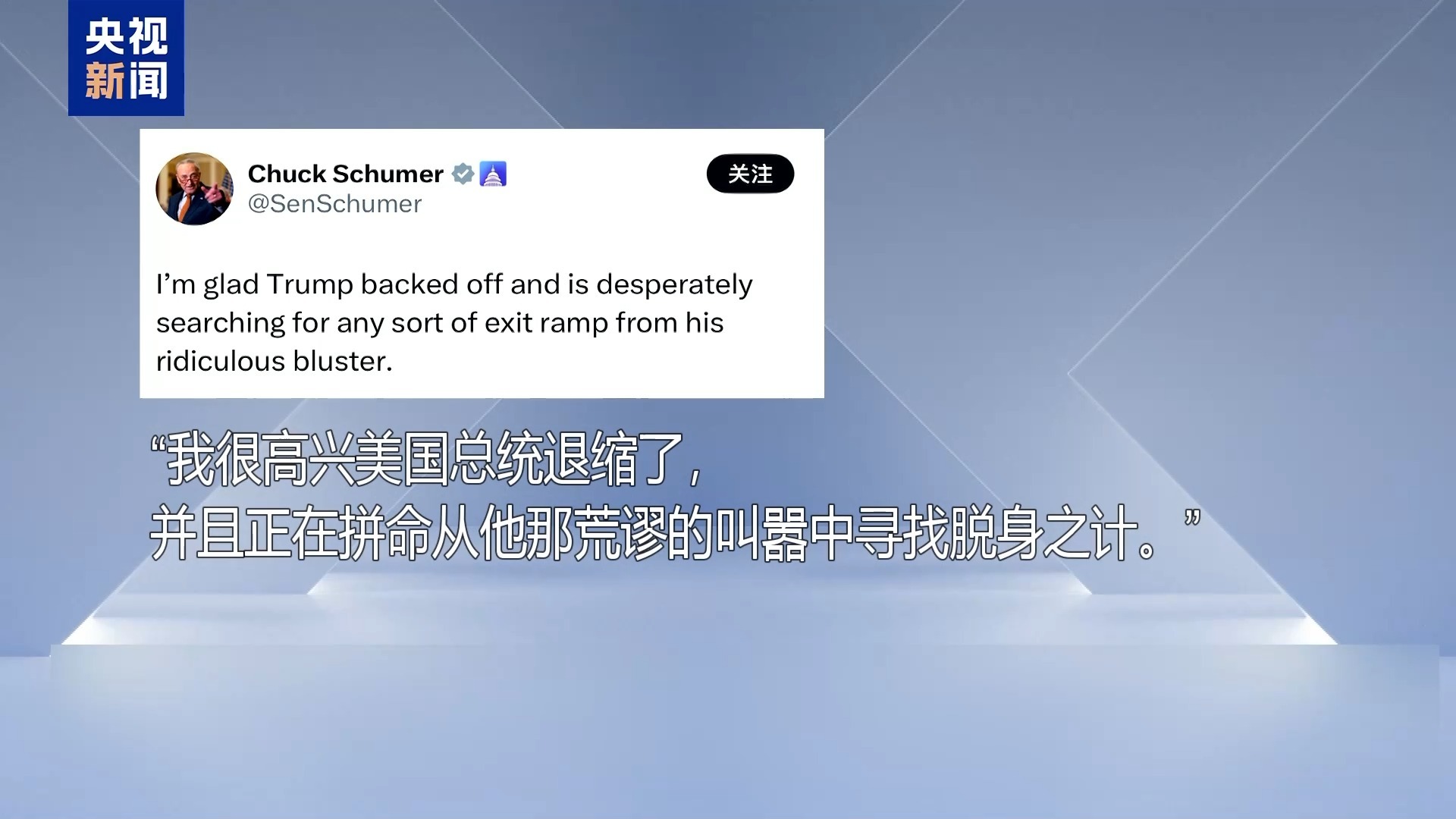 就在特朗普宣布停火之后,美国参议院民主党领袖查克·舒默表示:“我很高兴美国总统退缩了,并且正在拼命从他那荒谬的叫嚣中寻找脱身之计。”