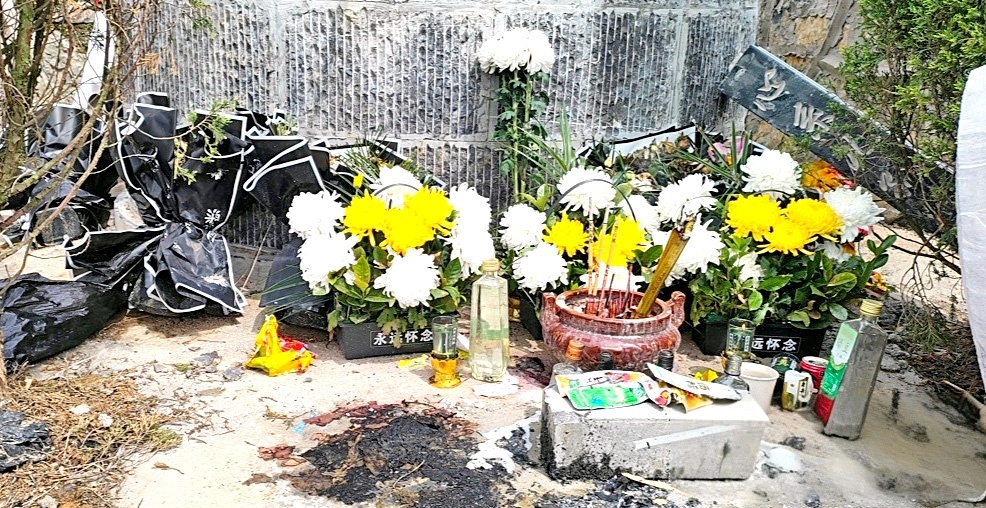 今年清明节,陈刚墓前摆满菊花