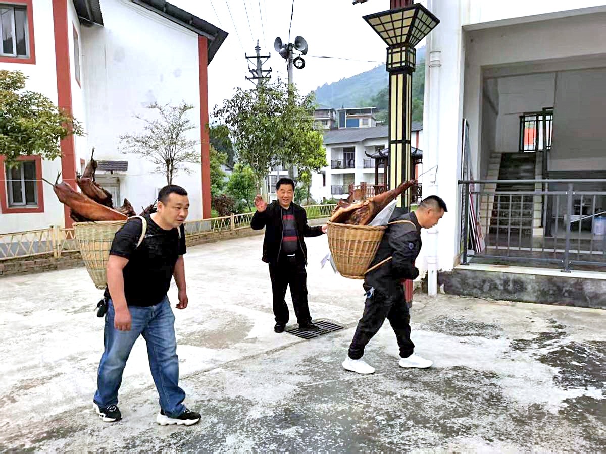 陈刚(左一)帮乡亲背农产品