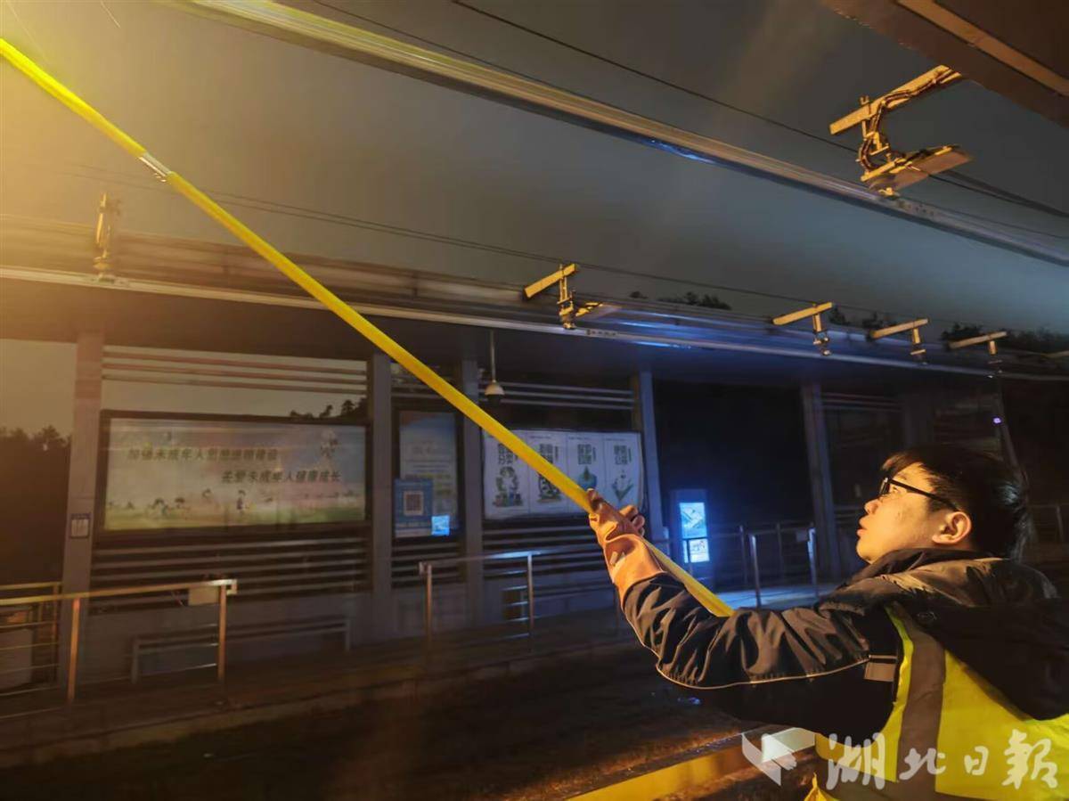 除常规公交保障外,有轨电车车都T1线也同步强化应急防控措施,增派专业维保人员于凌晨4时开展全线巡线路检,重点对正线道岔、电缆井等关键设施进行细致排查,发现隐患立即上报、快速处置,坚决防范雨水浸泡引发的设备故障。安全技术人员在车轮广场、武汉商学院等重要站台路口定点值守,实时监测积水深度,严格按照涉水运营技术标准管控车辆通行;若积水超过安全阈值,立即启动有轨电车与公交应急接驳方案,有序转运乘客,确保乘客安全抵达目的地。