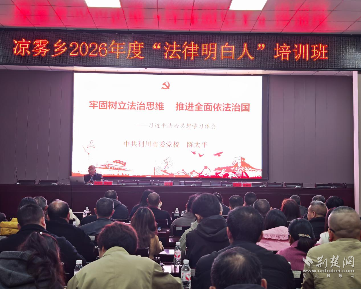 荆楚网(湖北日报网)讯(通讯员 雷鸣)4月8日,利川市凉雾乡开展2026年度乡村“法律明白人”专题集中培训,来自全乡各村“两委”成员、人民调解员、网格员、村民代表等“法律明白人”骨干100人齐聚一堂,集中“充电赋能”。