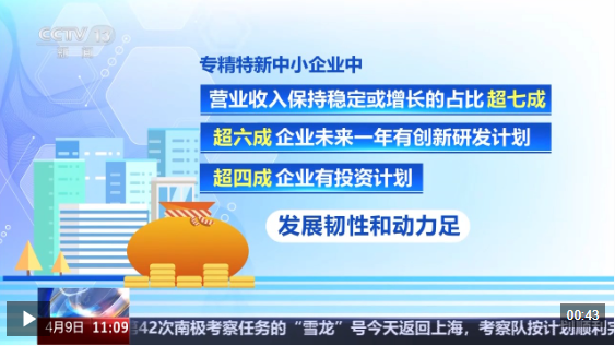 问卷调查显示,专精特新中小企业中,营业收入保持稳定或增长的占比超七成,超六成企业未来一年有创新研发计划,超四成企业有投资计划,发展韧性和动力足。