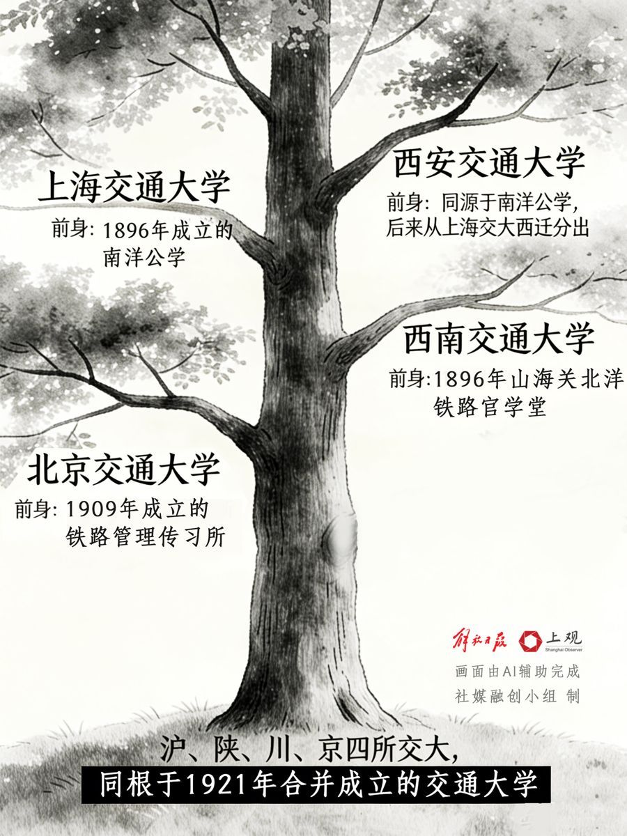 为什么全国有这么多“交大”?从南洋公学的破土而出,到1921年的大合组,再到半个多世纪前的西迁……这段“分开生长,根脉相连”的历史,我们为你画了下来。