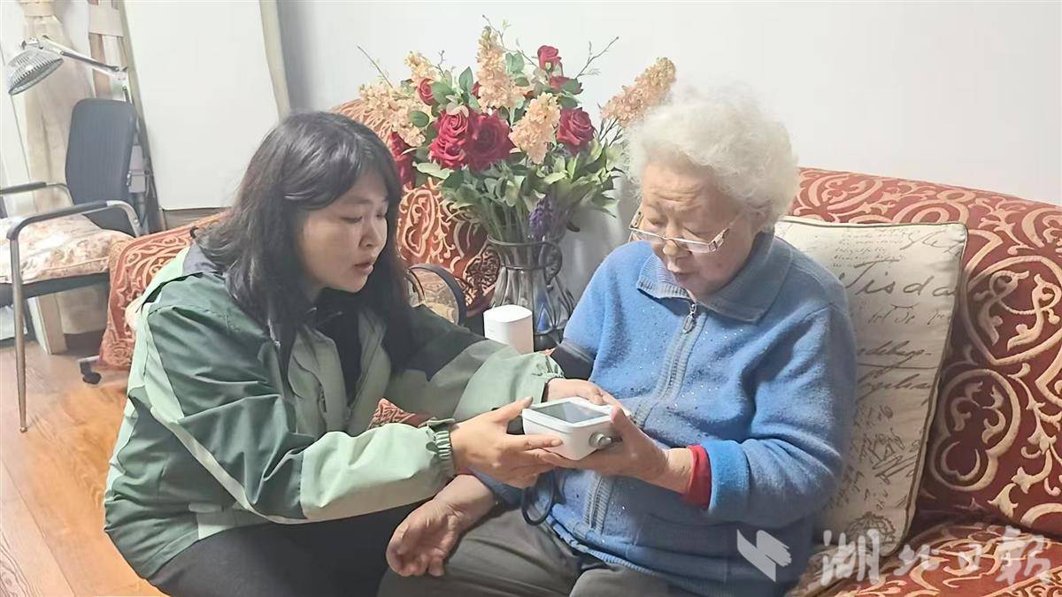 湖北日报讯(记者朱惠、通讯员刘承凯、范姣)4月9日,在武汉市江岸区民政局指导下,武汉吉年养老服务有限公司工作人员为做好独居老人安全守护工作,冒雨前往江岸区中星社区,上门看望刘泽蕙老人。该公司员工仔细检查了安装在老人家里的几个报警设备,查看其功能是否完好,同时帮老人测量了血压,并叮嘱老人下雨天外面路滑,尽量不要出门。