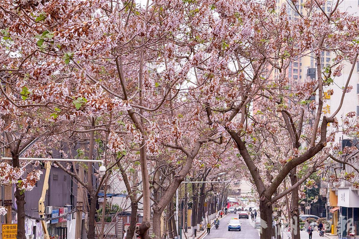 2026年4月8日,暴雨将至,在武汉江汉区八古墩东一巷,泡桐花在风起云涌前静静盛放。淡紫色花穗缀满枝头,与街巷改造后的特色造景相映成景。趁风雨未至、繁花未落,定格下这份难得的春日画面。雨后花落,更显此刻雨前景致的珍贵与动人。(湖北日报全媒记者 倪娜 摄)
