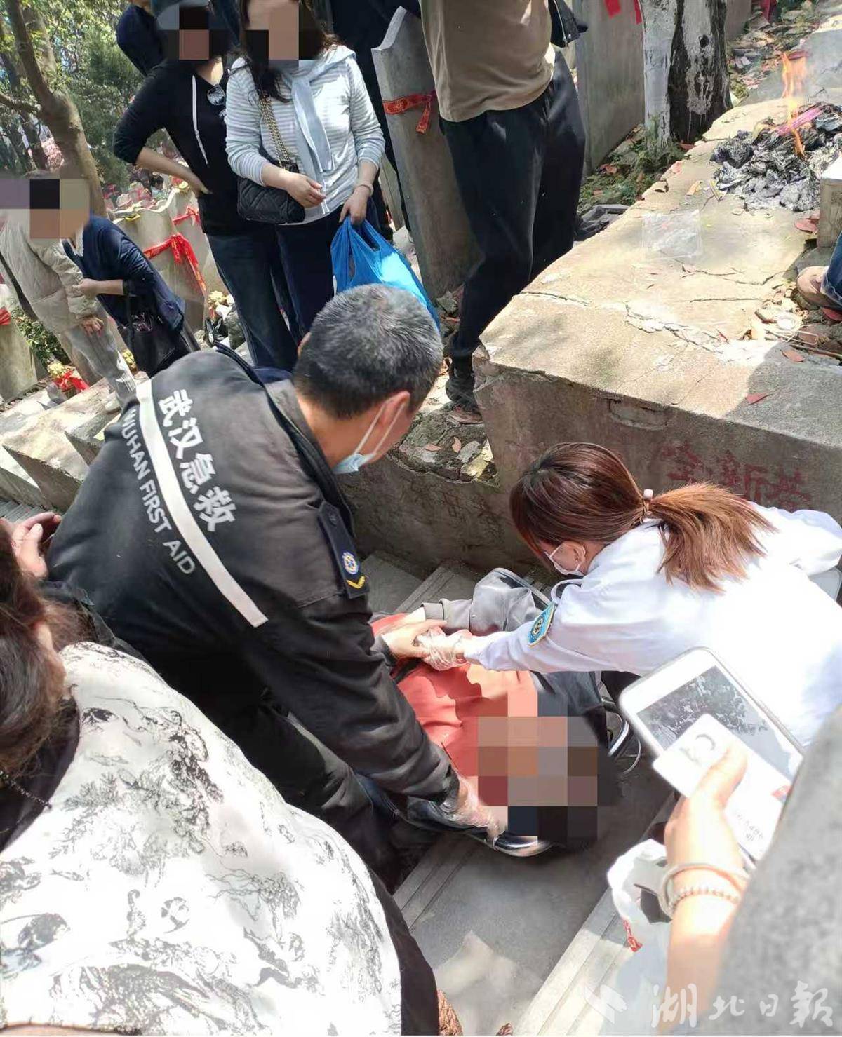 湖北日报讯(记者张竞恒、通讯员李爽)“醒醒!怎么了?”4月4日上午,武汉市汉阳区扁担山公墓的石阶小路上传来惊呼,50余岁的黄先生在扫墓途中突然倒地、意识丧失,家属马上拨打了120,一场与时间赛跑的生命救援随即展开。