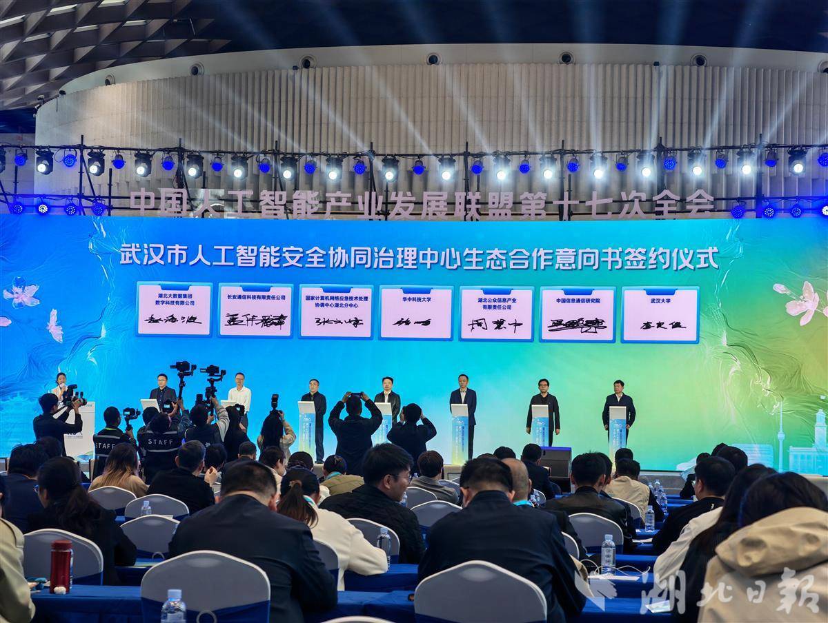 武汉市人工智能安全协同治理中心签约成立。(湖北日报全媒记者 马文俊 摄)