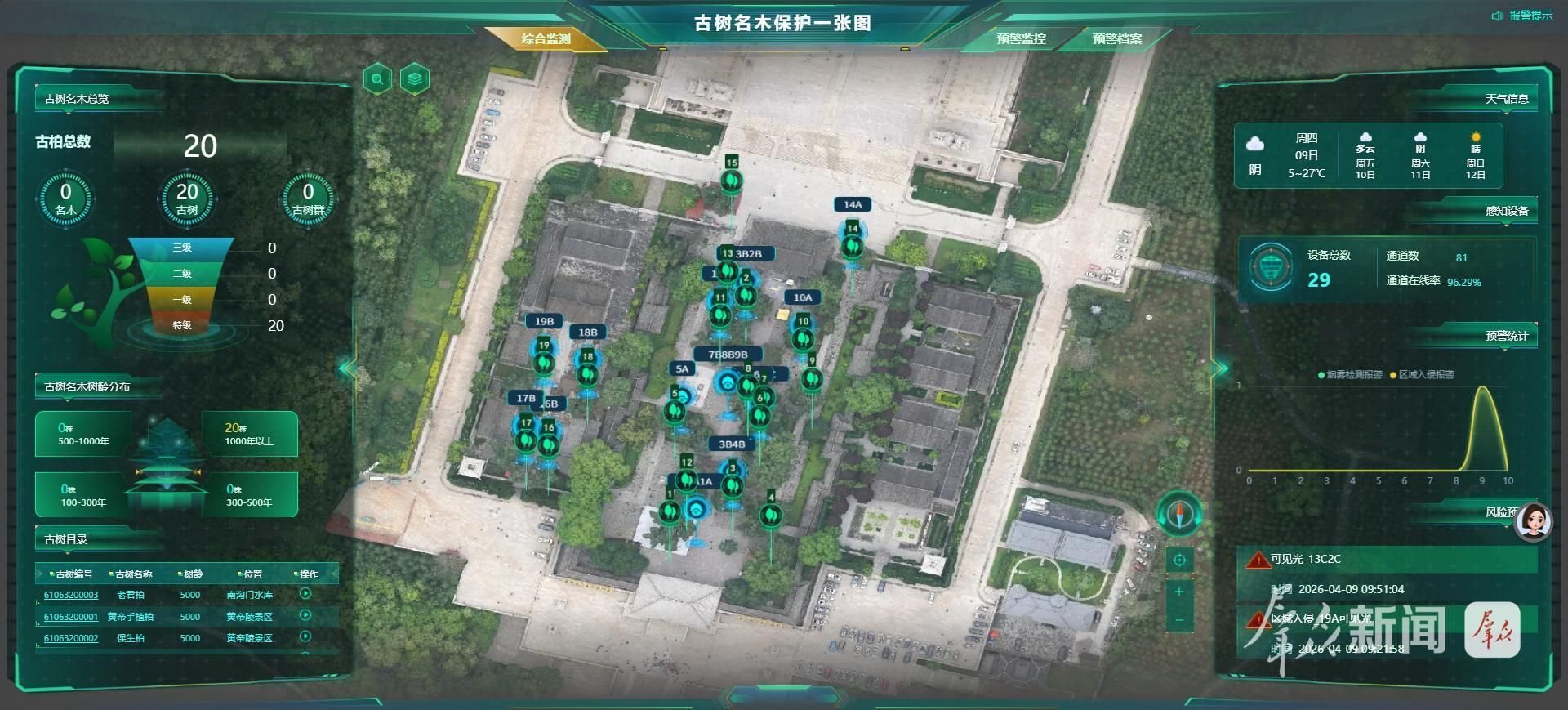 从5000年树龄的黄帝手植柏,到3000多亩古柏林,数字化正为这些“有生命的文物”筑牢保护屏障。