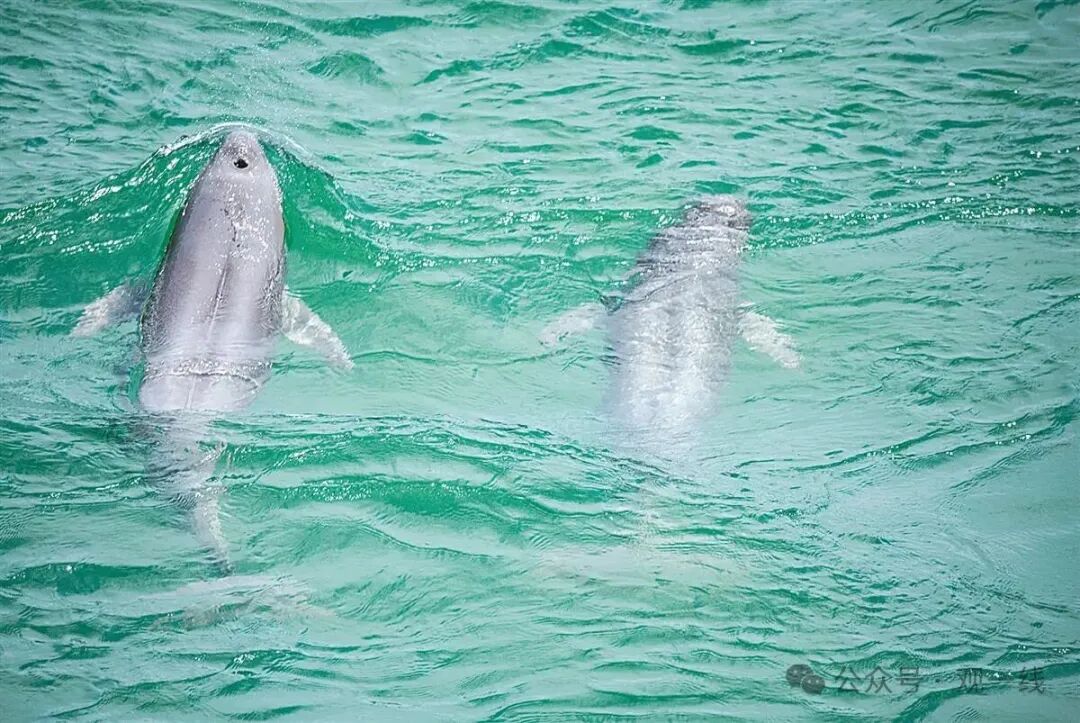 长江江豚在碧绿的江水中逐浪嬉戏(吴承忠|摄)