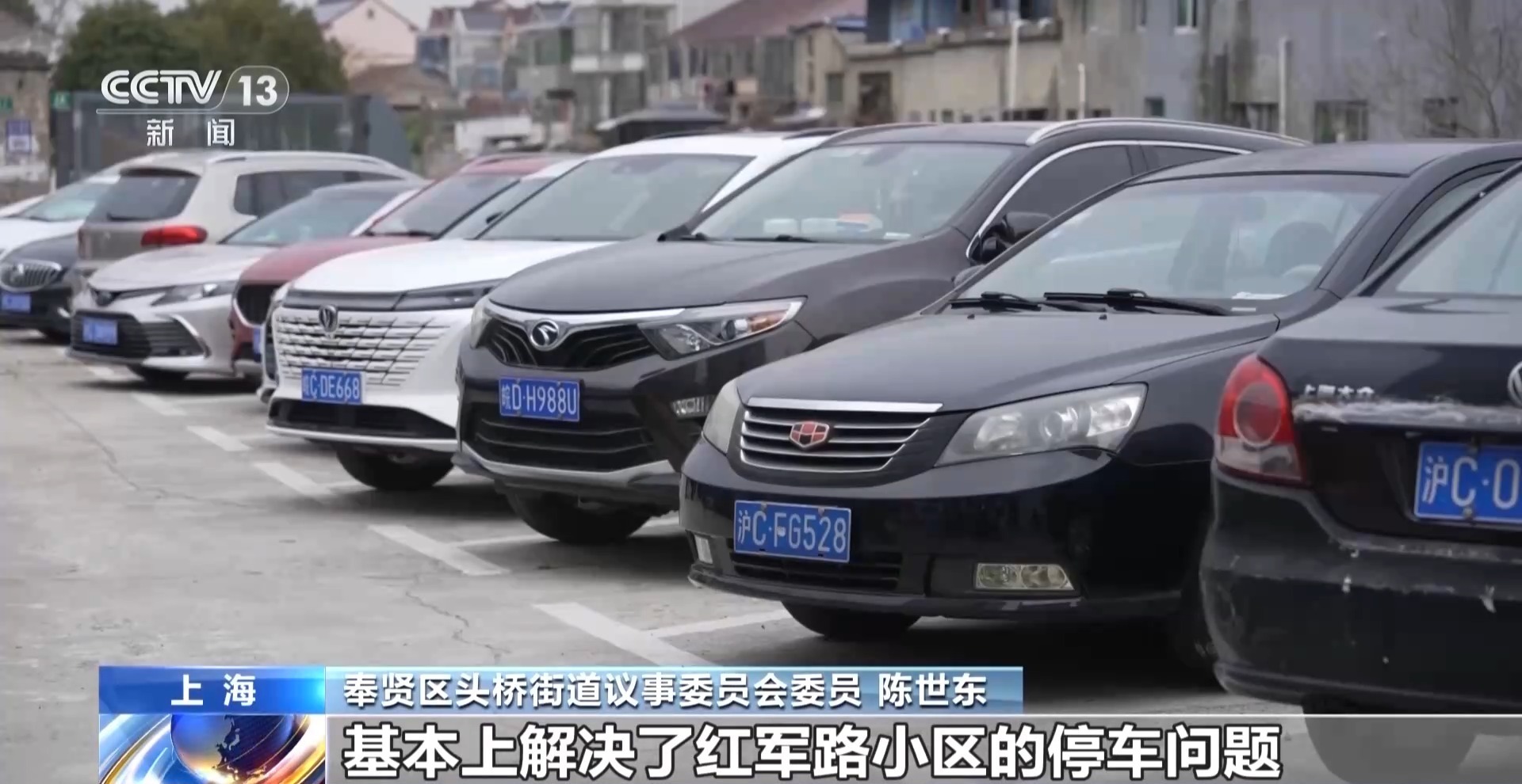 奉贤区头桥街道议事委员会委员 陈世东:以前人家围着这里种了一大块菜地,那边也是一大块菜地,这里都是垃圾。我就精打细算,用图纸画的,这里停车位,这里充电桩,再加上其他区域几个停车位,基本上解决了红军路小区的停车问题。