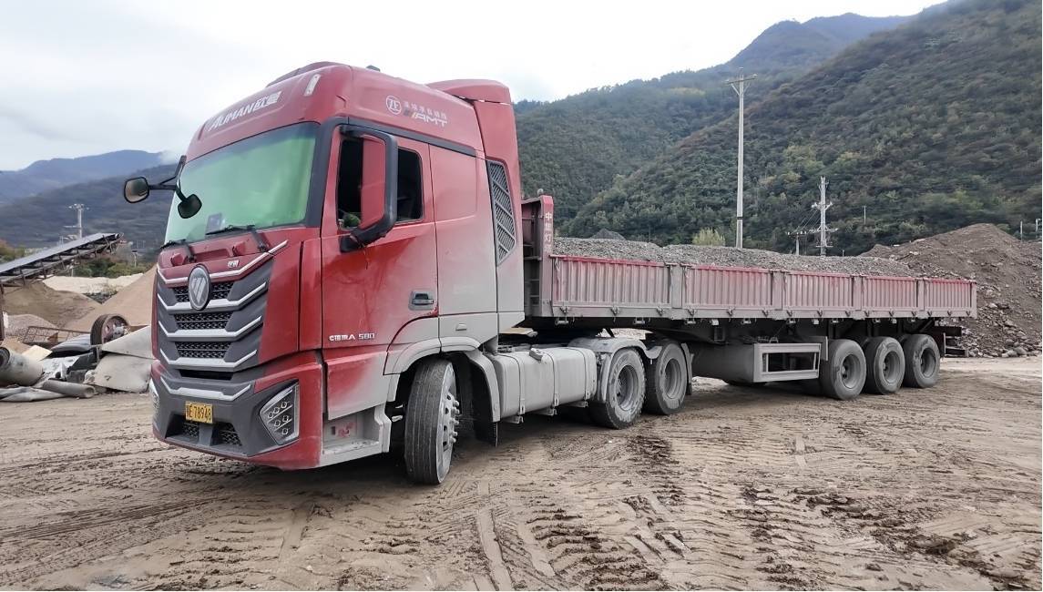 货车司机在保康县马桥镇装运磷矿石。