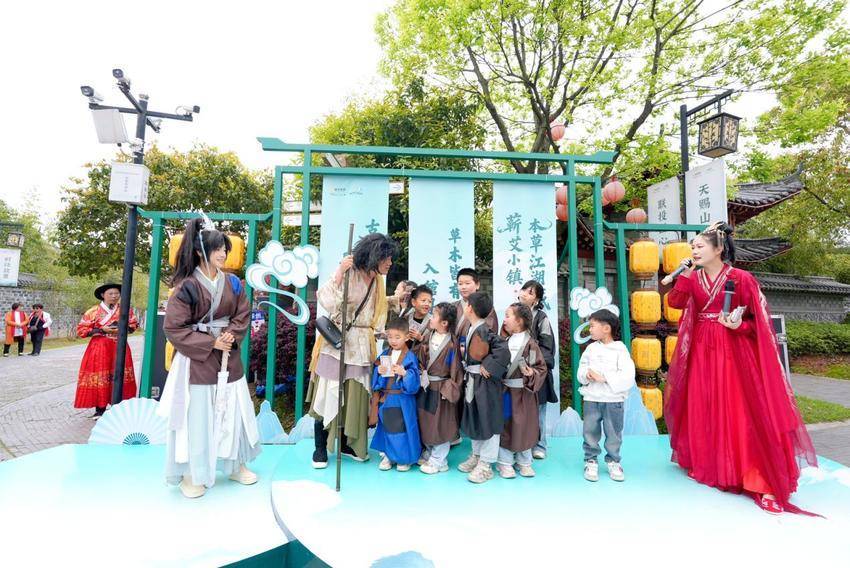 本次推出的“本草江湖城”活动,是“文化场景化、体验产品化”模式的集中呈现。活动依托蕲艾小镇明清古建群落,复刻明代蕲州市井风貌,构建“银票+碎银”流通体系。游客入城即获银票,通过参与与捕快博弈、与乞丐对暗号、比“武”招亲、“阴阳药材分类”等趣味任务赚取银票,可在侠客坊兑换零食、玩具或参与拍卖会。