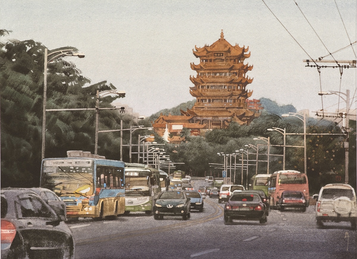 刘寿祥 《黄鹤楼雄姿》纸本水彩