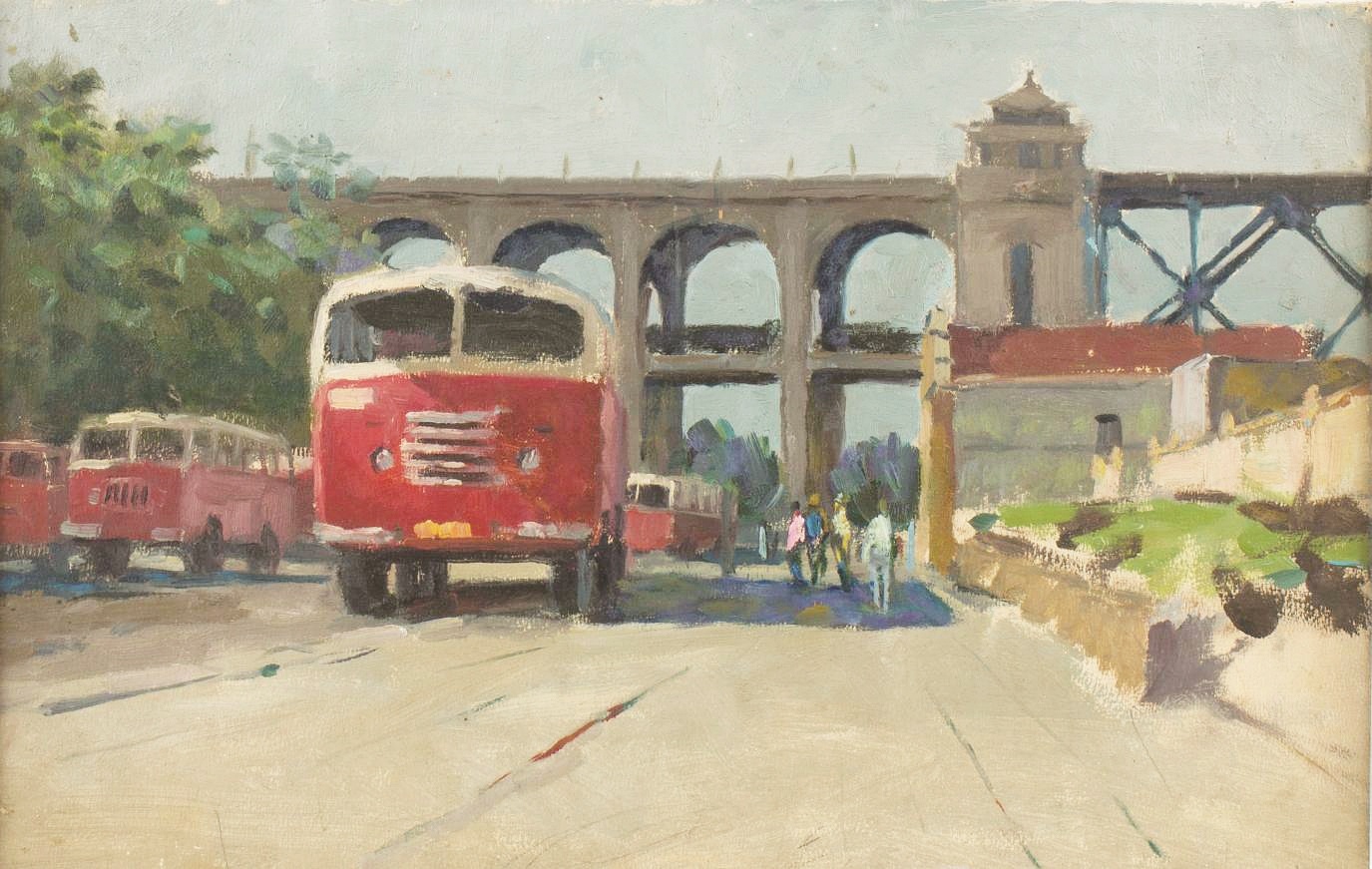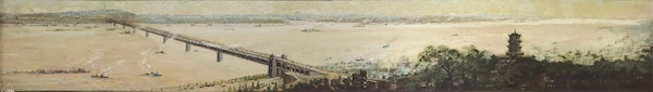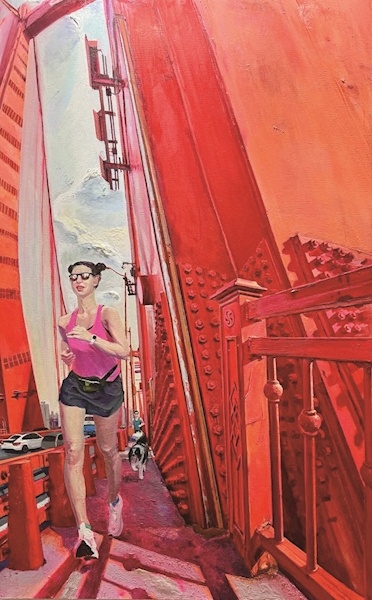 戚亚红《沐光而行·鹦鹉洲长江大桥》布面油画