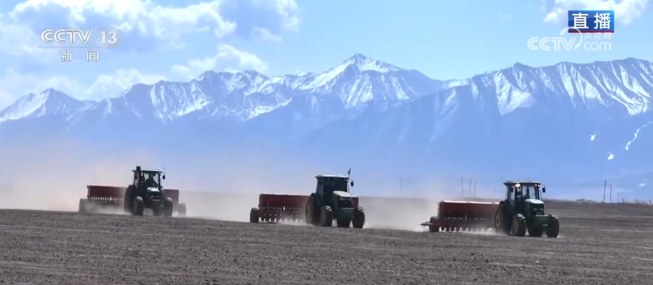 在青海省门源县的一处青稞种植基地,祁连山东段的达坂山雪峰清晰可见,这里的海拔在3000米以上,属高原冷凉气候;同时日照非常充足,是青藏高原青稞种植的黄金海拔带,也是青海省青稞种植的核心区之一。此刻,当地农户正抢抓高原春播的黄金窗口期,开展播种作业。
