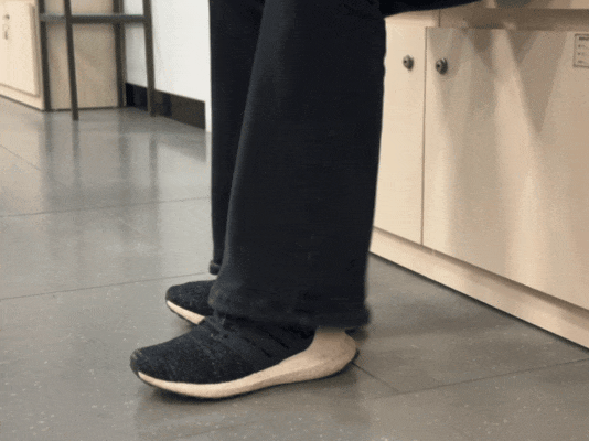 坐在有直背及把手的椅子上,将脚跟置放于地上,然后尽量以最大幅度及最快速度,脚趾拍地10次。