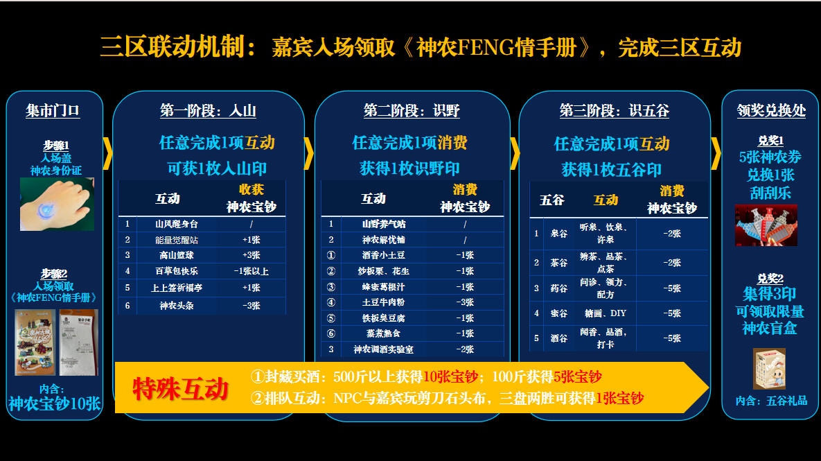 要说本届封藏节最不能错过的区域,神农FENG情街绝对排在第一。按照“入山—识野—识五谷”的主题依次展开,一站式集齐打卡、互动、美食、文化体验,全程不绕路、不费脑,轻松玩遍所有亮点。