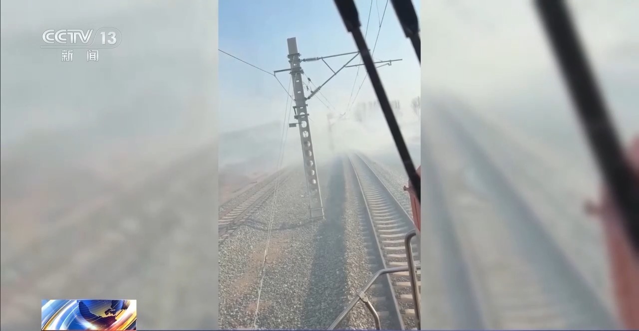 乌鲁木齐铁路公安处呼图壁站派出所副所长 王萧:我们选取干树枝、干草垛这类线路周边最常见的易燃物作为实验对象,堆放出10米乘2米的模拟现场。可以看到现场火源引燃仅3秒,干树枝便出现明火;10秒内,火焰迅速包裹整个树枝堆,形成高度超2米的火柱;30秒时,火势向周边干树枝快速蔓延,伴随大量火星飞溅,浓烟垂直升腾高度达3米以上;1分钟内,易燃物整体进入猛烈燃烧阶段,火焰温度急剧升高,周边空气热浪灼人。