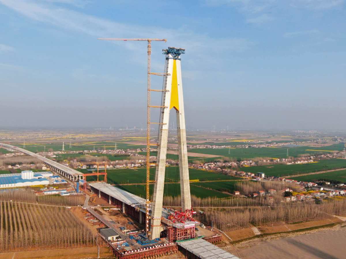 汉南长江大桥主塔冲刺封顶(湖北日报全媒记者 戴辉)