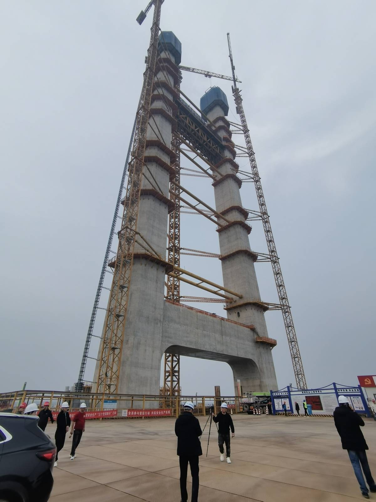 十巫南高速新洲特大桥主塔冲刺封顶(受访者供图)