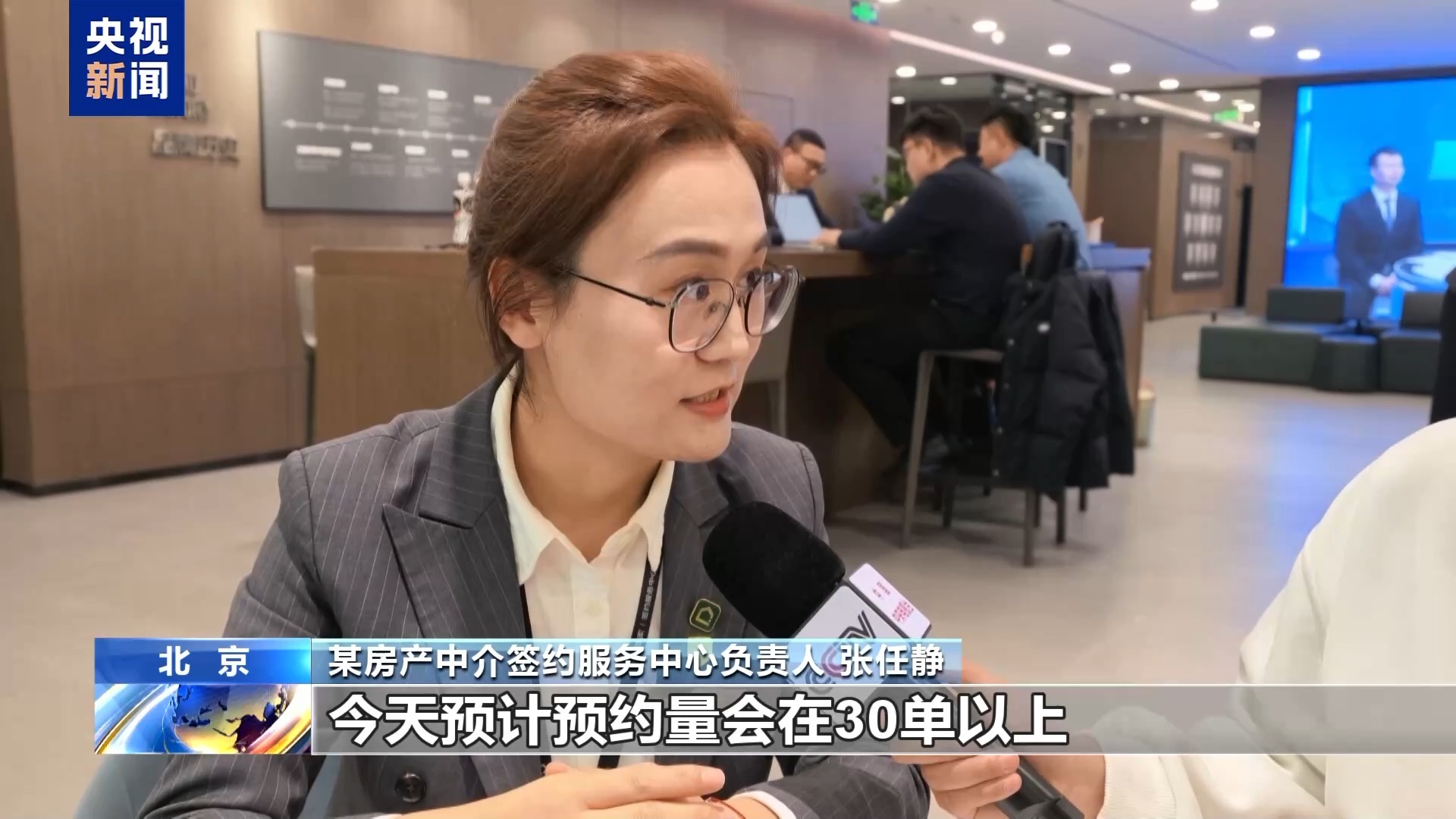 某房产中介签约服务中心负责人 张任静:今天预计预约量在30单以上,周末人比较多,会是今天这种状态的2到3倍。
