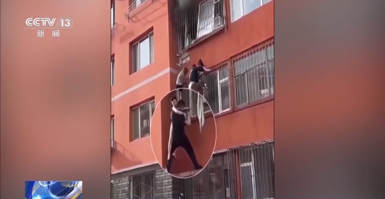 正在轮休的武警姜磊住在同一栋居民楼里,听到异响后他迅速赶来。由于火场内部已无法进入,姜磊从楼外爬到二楼窗边。此时,火势已蔓延至三楼窗口,孩子爸爸爬出窗外,往下面送两个年幼的孩子,姜磊一直在旁边协助。