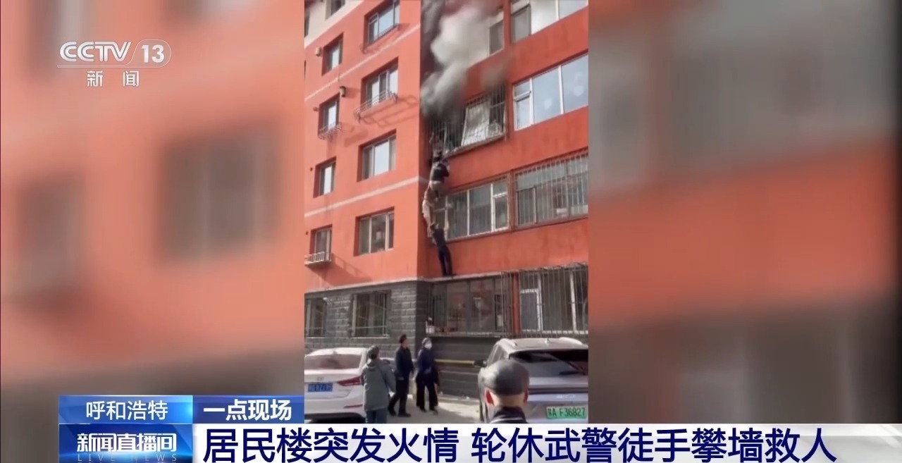 最近(4日),内蒙古呼和浩特市一居民楼突发火灾,一家四口被困三楼窗台。同住一小区的武警姜磊当天正在家轮休,危急时刻,他徒手攀爬外墙救援,与热心群众一起将一家四口救出。