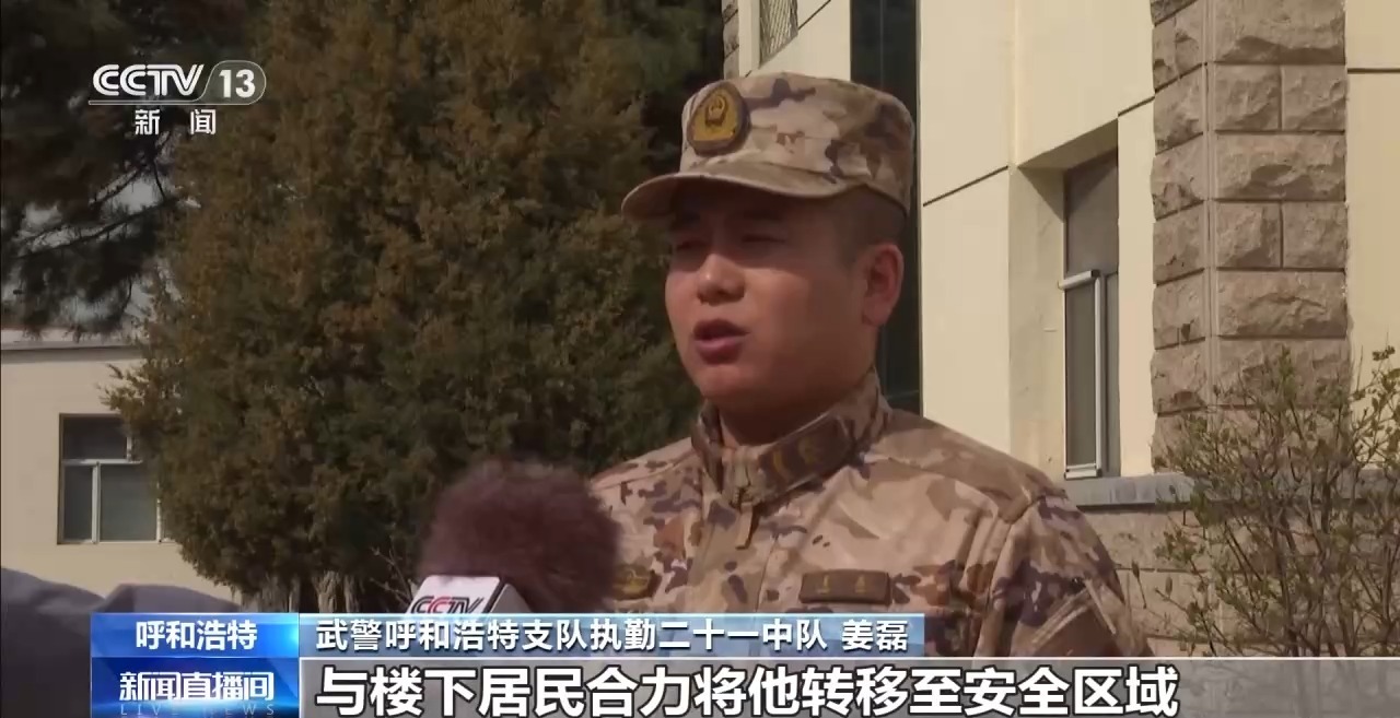 武警呼和浩特支队执勤二十一中队 姜磊:火势很急,我迅速抱紧他,与楼下居民合力将他转移至安全区域。