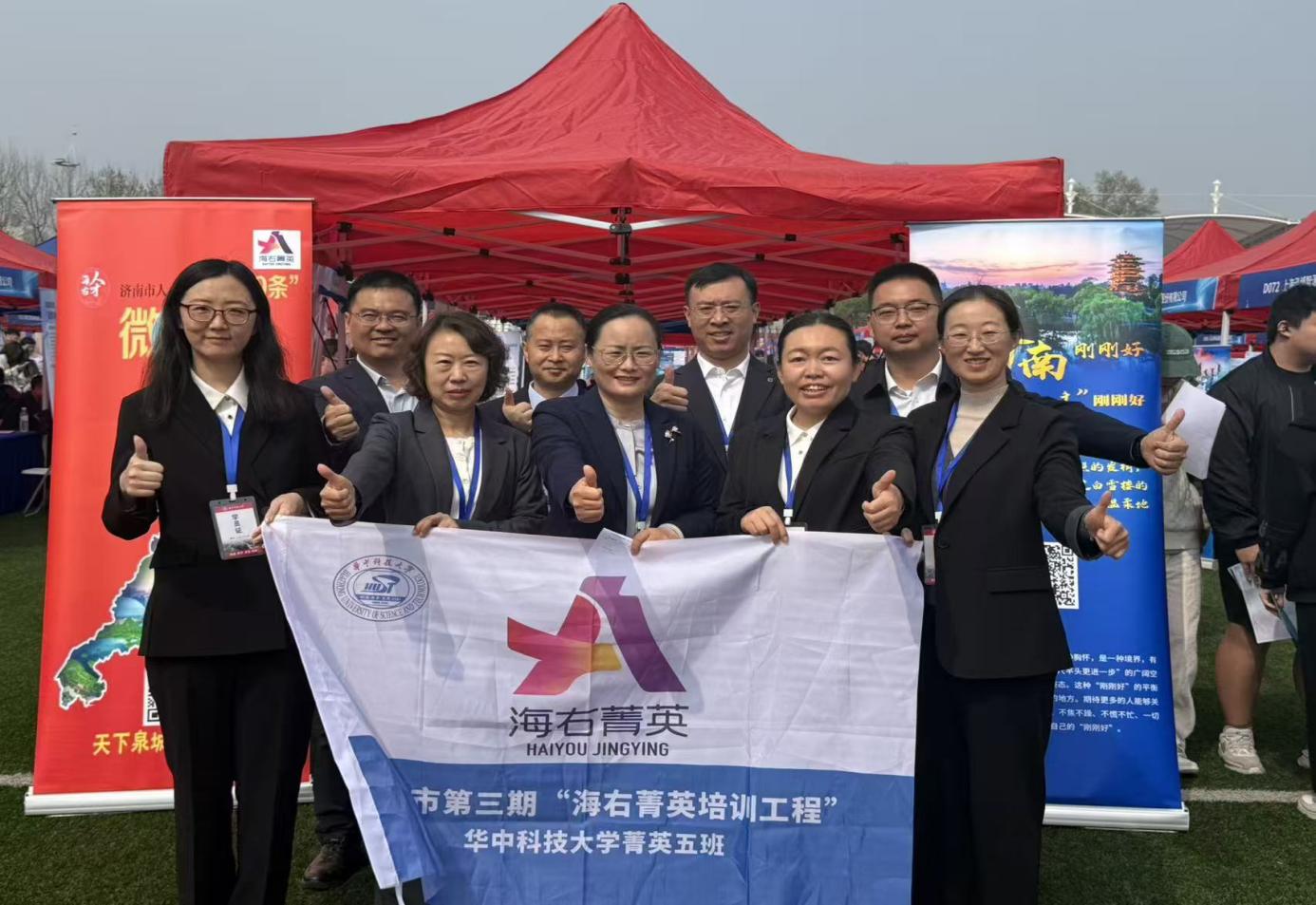 实际上,这场“引才接力”早已开始。3月29日,华科大菁英五班全体学员积极参加“逐梦远航”华中科技大学2026届毕业生春季大型供需见面会,主动帮助济南驻地企业招揽人才,联动重点企业召开专场宣讲会,并向华中科技大学党委书记刘波同志专题汇报了“海右菁英培训工程”及招才引智阶段性成果。学员们以务实行动扩大济南城市影响力,构筑校地人才对接的坚实桥梁,将“海右菁英”的责任担当书写在招才一线。来自湖北中医药大学的陈同学在双选会现场表示:“自从上次在华科大招聘会济南展区结识了海右菁英的学长学姐,就一直关注4月10日的招聘信息,今天特意带同学一起应聘,感谢学长学姐持续分享机会与政策。”点滴细节,折射出济南引才的诚意与温度。