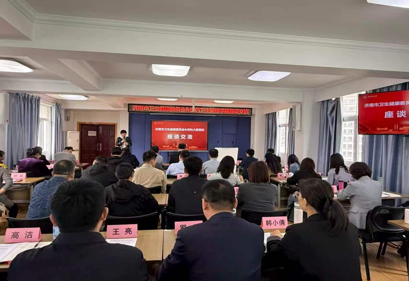 泉城风起,江城潮涌。 4月10日上午,华中科技大学同济医学院医药卫生管理学院报告厅内气氛热烈,济南市卫生健康委员会2026年武汉站校园招聘专场座谈交流活动在此顺利举行。此次活动由正在华中科技大学接受脱产培训的济南市第三期“海右菁英培训工程”菁英五班学员积极组织协调,旨在深化校地人才合作,搭建卫生健康领域常态化学术交流与人才引育平台。同济医学院医药卫生管理学院、济南市人社局、济南市卫生健康委等单位领导、工作人员及华科大菁英五班全体学员共同参会,围绕人才培养、济南城市发展、人才引进政策及医院特色需求展开深入探讨,为后续校地共建按下“加速键”。