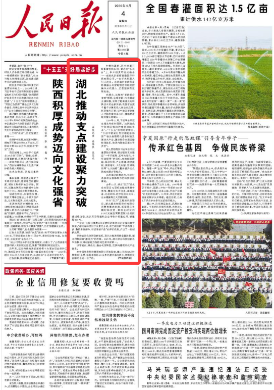 几天前,《人民日报》头版头条刊发长篇通讯《湖北推动支点建设聚力突破》。这篇重头报道是对湖北开年势头的一次全景呈现,更是从国家层面对湖北支点建设战略上的肯定、方向上的肯定与成效上的肯定。