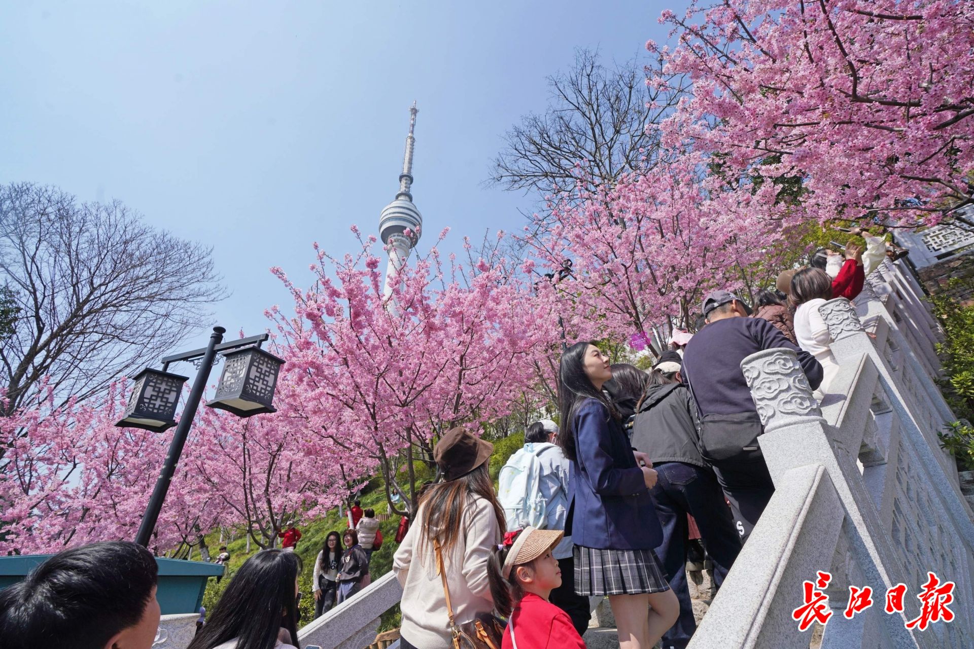 汉阳龟山公园的樱花吸引不少游客前往拍照赏景。 记者苗剑 摄
