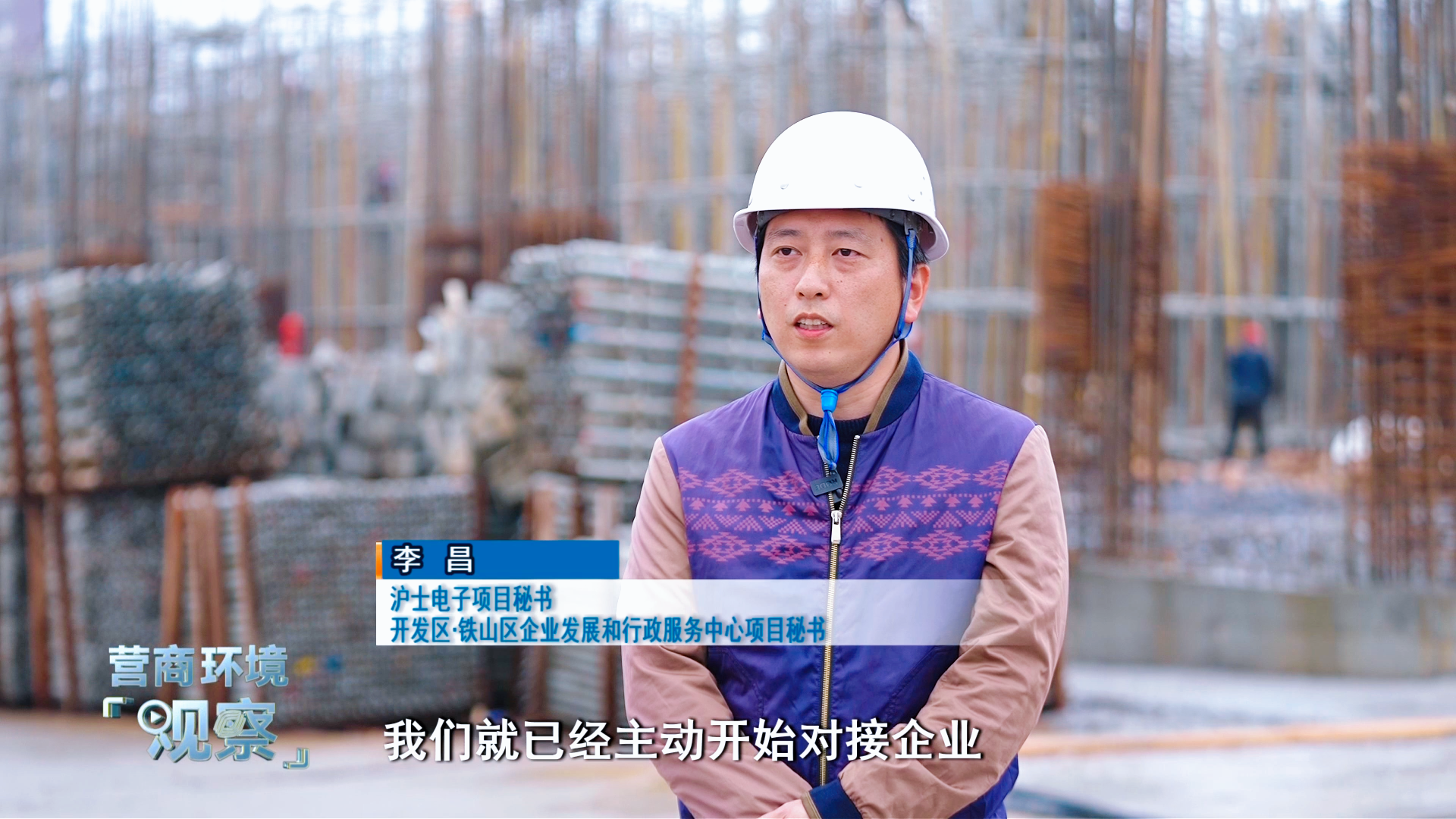 沪士电子项目秘书、开发区·铁山区企业发展和行政服务中心项目秘书 李昌:企业最担心的就是审批流程繁杂,那么我们这个时候就承担起这个责任,让他们在办证的过程当中,少跑腿,省时省力省心。实际上在项目签约之前,我们就已经主动开始对接企业,根据企业的需求,制定了一个工期倒排,并且主动告诉企业我们的“桩基先行”政策,主动上门收集资料。
