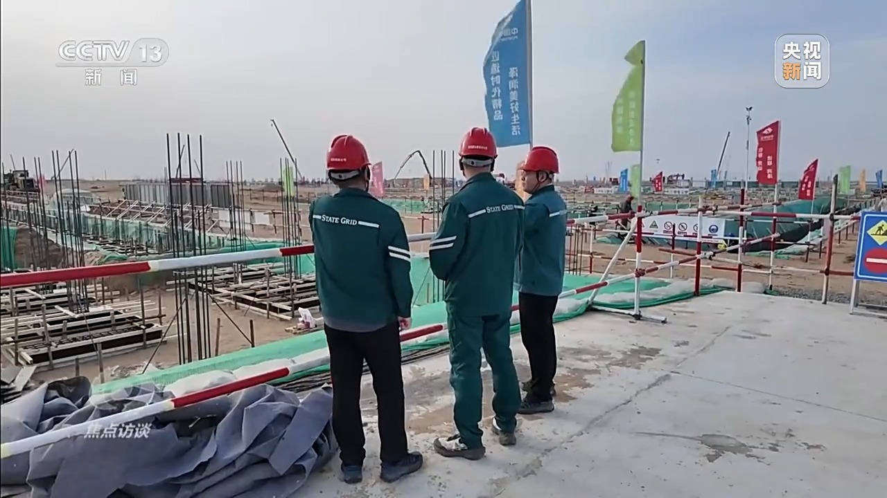 画面中正在建设的是蒙西—京津冀±800千伏特高压直流输电工程,这条电力高速公路投运后每年可向京津冀负荷中心输送电量超360亿千瓦时。