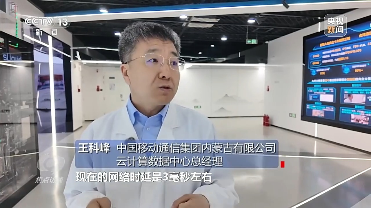 中国移动通信集团内蒙古有限公司云计算数据中心总经理 王科峰:现在呼和浩特数据中心园区95%的算力都是供往京津冀的,网络时延是3毫秒左右,一眨眼是300毫秒,相当于一眨眼的时间,数据在北京和呼和浩特市之间十个来回。