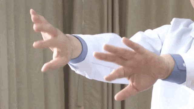 握拳,完全放开,再握拳,再放开,正常情况下动作会非常灵活、协调,但是如果有一侧出现了帕金森病早期表现,这个动作就会笨拙,两边不一致,或动作比较缓慢。