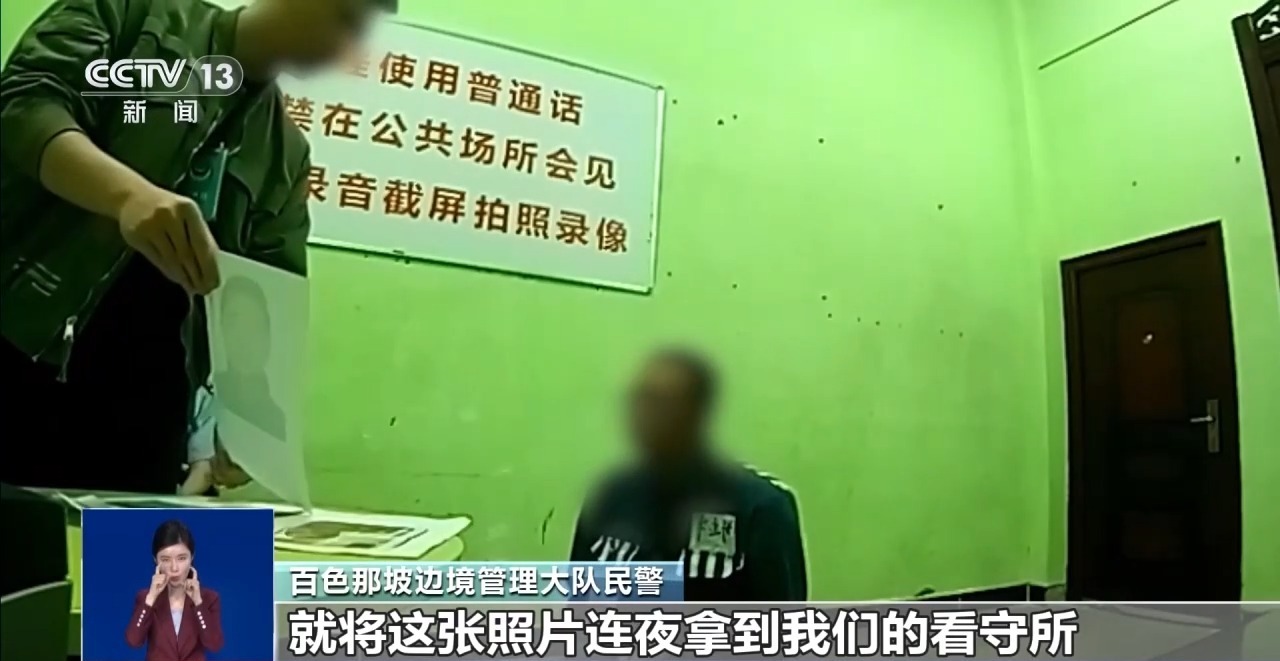 百色那坡边境管理大队民警:发现“峰哥”在那家水果店打工,我们在家里面的专案组同志就将这张照片连夜拿到看守所,给“阿康”进行辨认,“阿康”直接指出这个人就是“峰哥”。