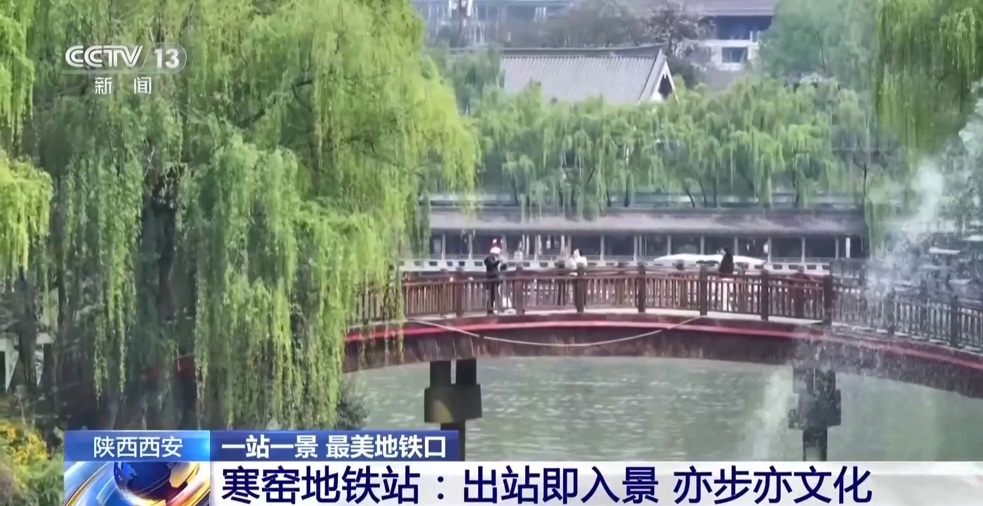 除了独具巧思的车站设计,寒窑站更有“出站即赏景”的唐风湖景加持。