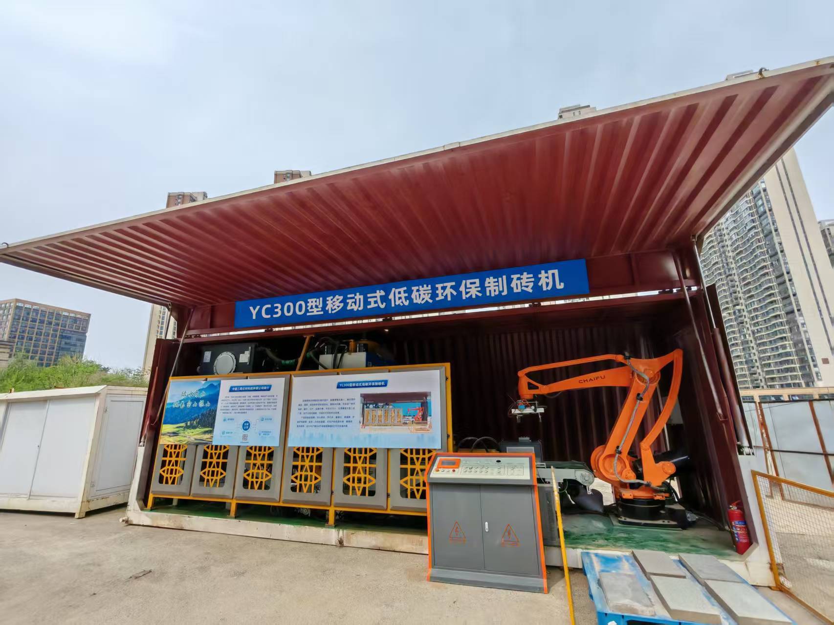 这是中建三局旗下中建壹品自主研发的移动固废处理线,已在这个工地“吃掉”废弃混凝土块3500吨,“吐出”再生砖35万块,用于围墙、管网的砌筑及道路回填。