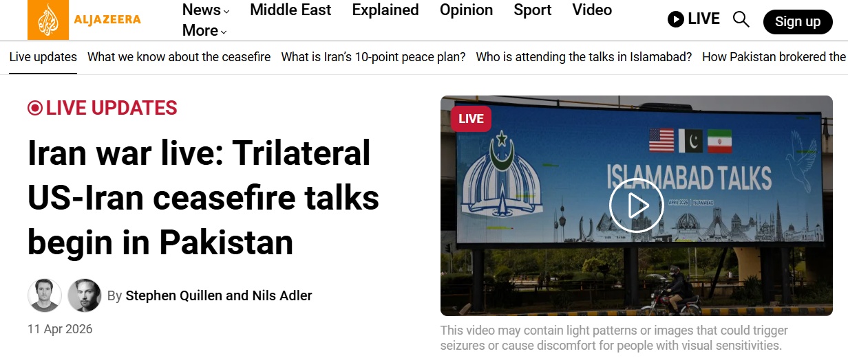 卡塔尔半岛电视台网站在11日的报道中评论称,美国和伊朗举行直接会谈具有重大意义。这不仅关系到停火,也关系到美国和伊朗伊斯兰共和国之间近半个世纪的敌对关系。巴基斯坦试图说服双方代表团表现出更大的灵活性,不要浪费这一历史性时刻,因为不仅是美国和伊朗,全世界都无法承受对和平、安全和能源经济的进一步损害。