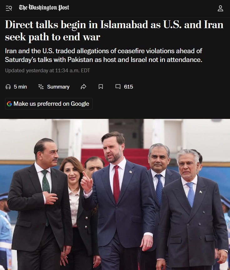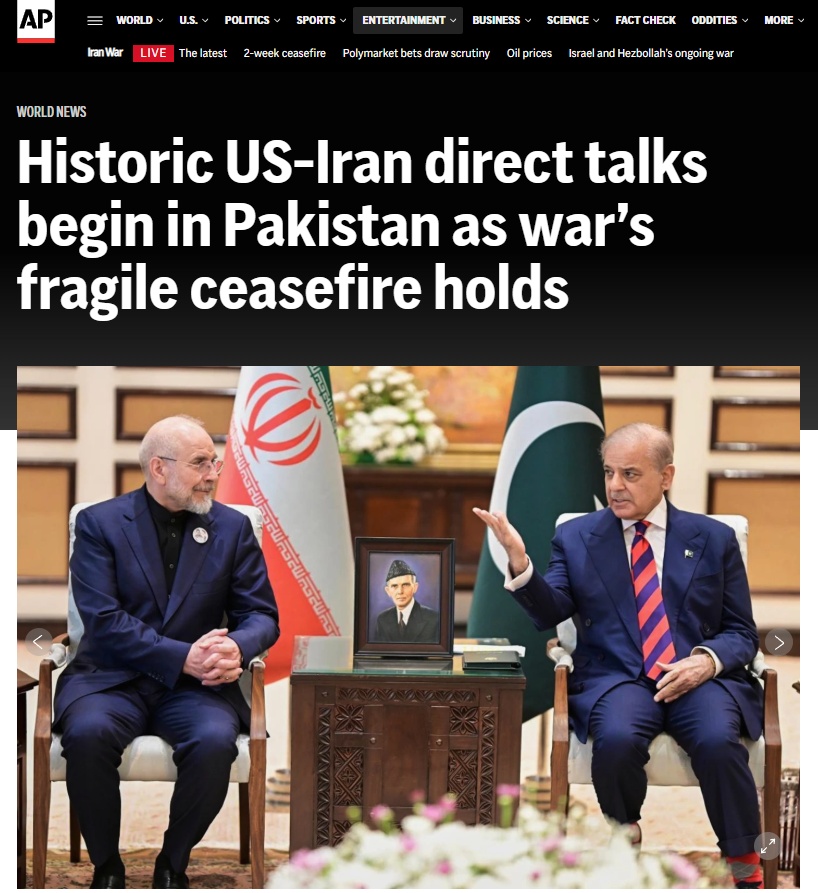 美联社11日报道,美伊双方在巴基斯坦开始了历史性的面对面谈判。白宫证实了直接会谈的性质,这是两国高层接触的罕见例子。