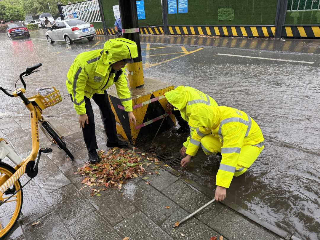 暴雨来袭,早高峰客流交织,学校、商圈、医院等人员密集区域成为守护重点。针对此种情况,各地公安机关组建应急突击队对积水路段、拥堵节点、隐患点位不间断巡查,联动园林、电信、路政、水务等相关部门形成处置合力,同时开通应急求助通道,最大限度减少群众损失。