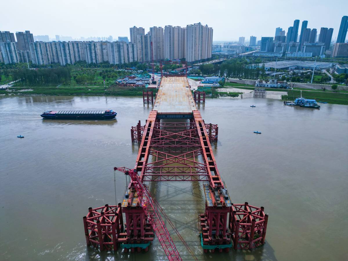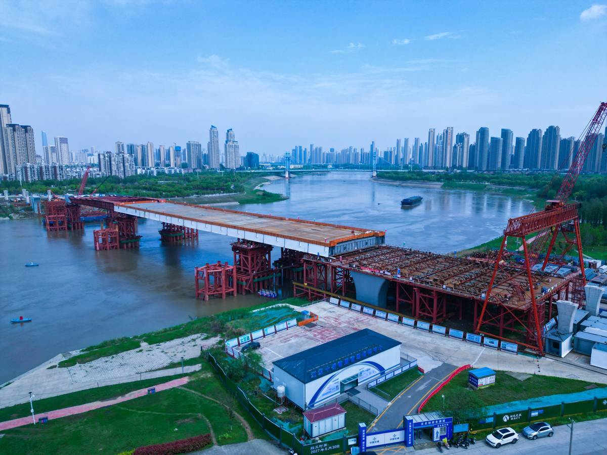 湖北日报讯(记者戴辉、通讯员鄂奇)4月10日,随着第四轮钢箱梁顶推完成,由湖北交投集团投资、中交二航局等单位承建的武汉江汉十桥项目钢箱梁顶推顺利过半。这座跨汉江大桥预计明年6月份左右通车。