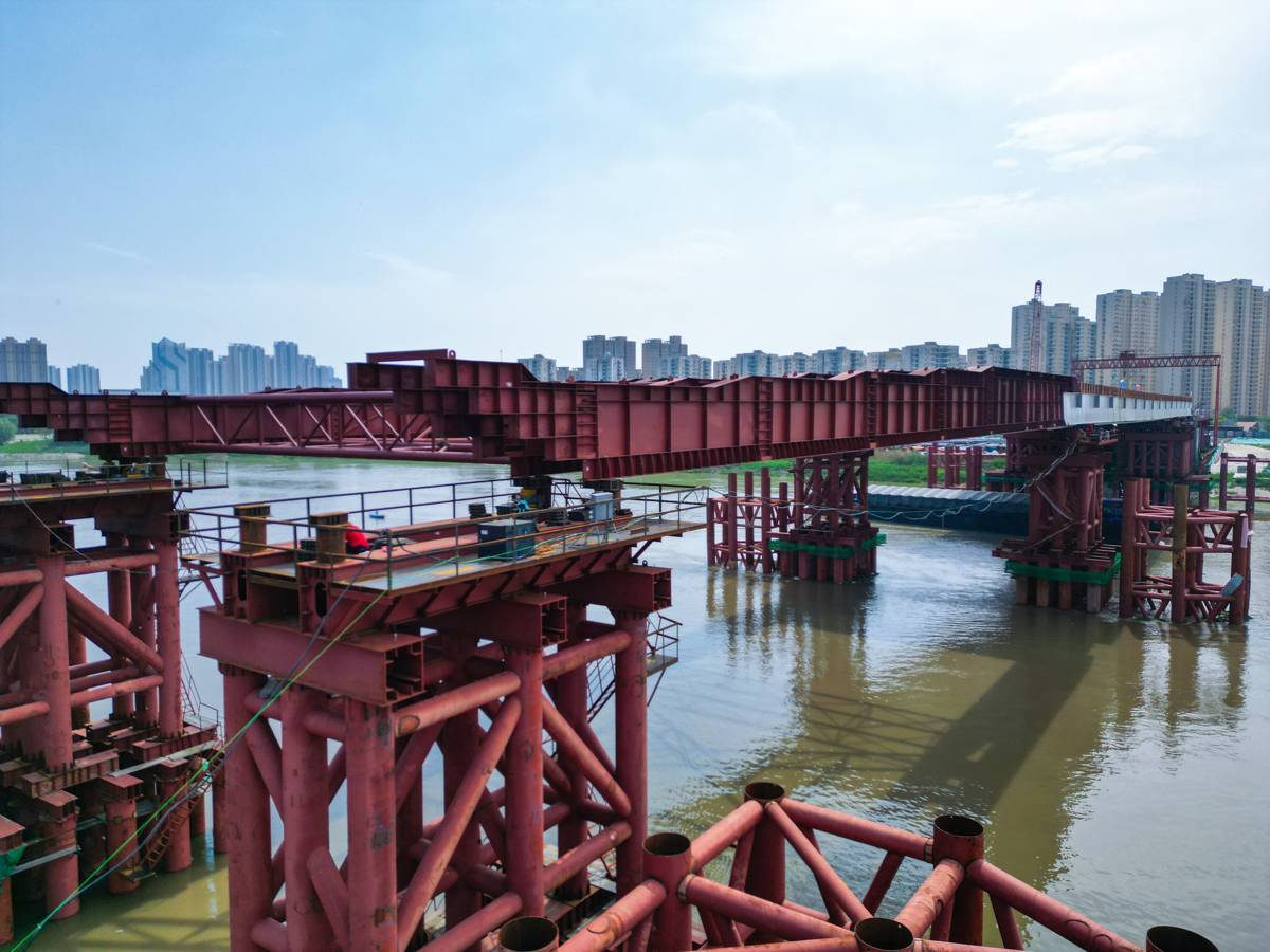 武汉江汉十桥钢箱梁顶推