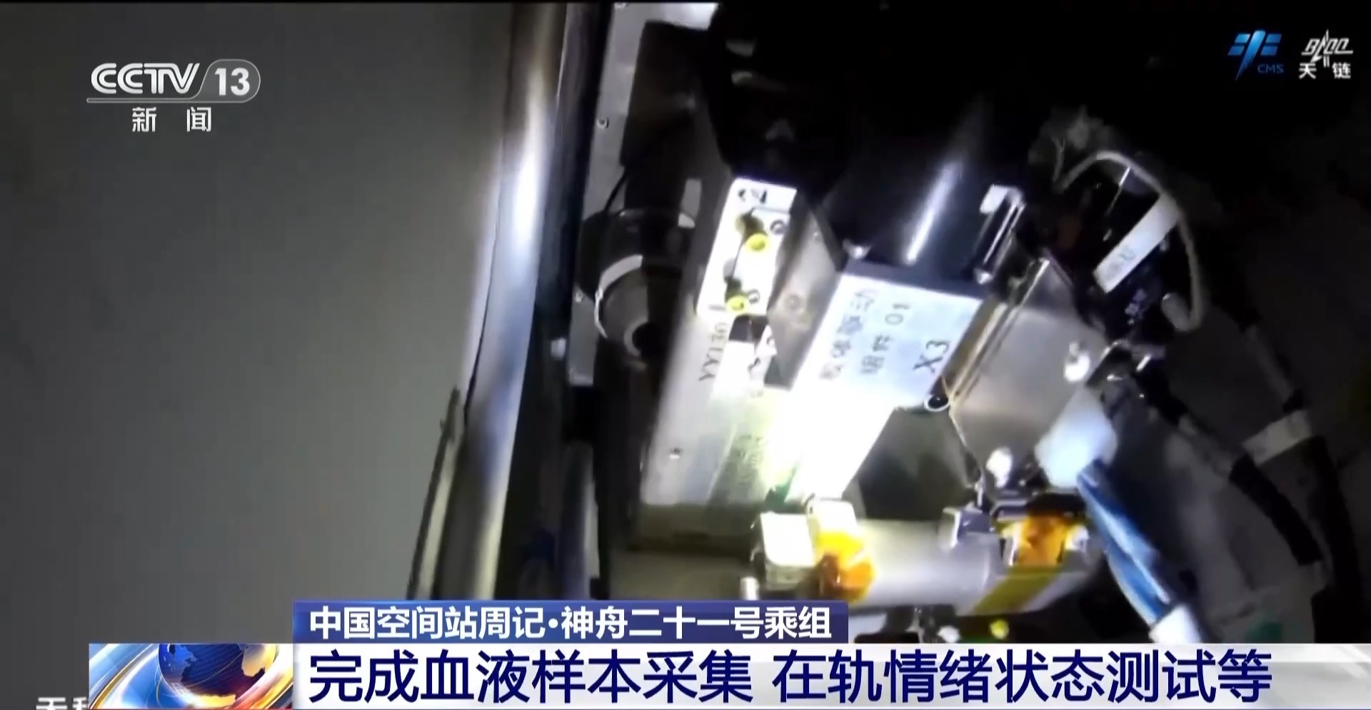 上周,根据骨代谢交互调控、空间节律与睡眠等实验计划安排,乘组完成了血液样本的采集,借助离心机进行处理,并妥善保存等待下行。此外,航天员使用笔记本电脑及相关实验软件,完成了元认知监控研究、应急决策能力评估、在轨情绪状态测试等多个项目的测试工作。