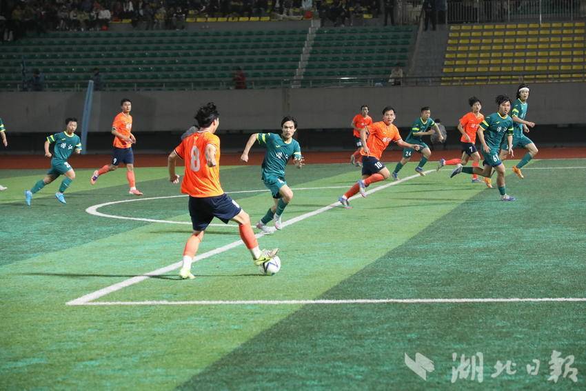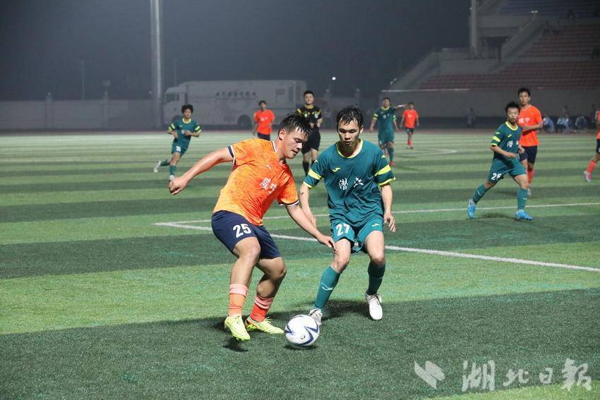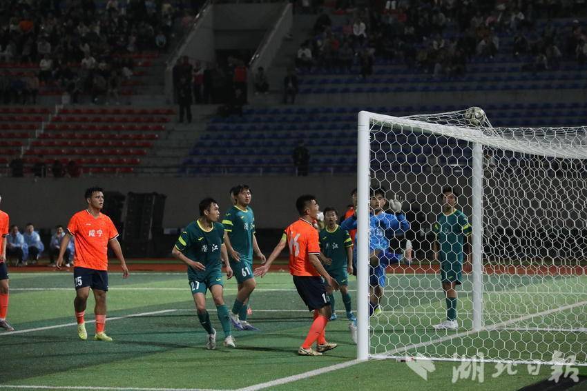 当晚19:30,随着哨声响起,比赛正式打响。绿茵场上,咸宁队迅速进入状态,凭借默契的中场联动、流畅的传切配合和积极主动的进攻节奏,牢牢掌握场上主动权,多次向潜江队球门发起猛烈攻势,创造出多个极具威胁的破门机会;潜江队则沉着应对,依托稳固的防守体系顽强抵御,同时抓住反击机会寻找破门突破口,双方你来我往、攻防交错,场面紧张激烈。